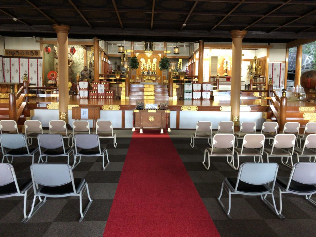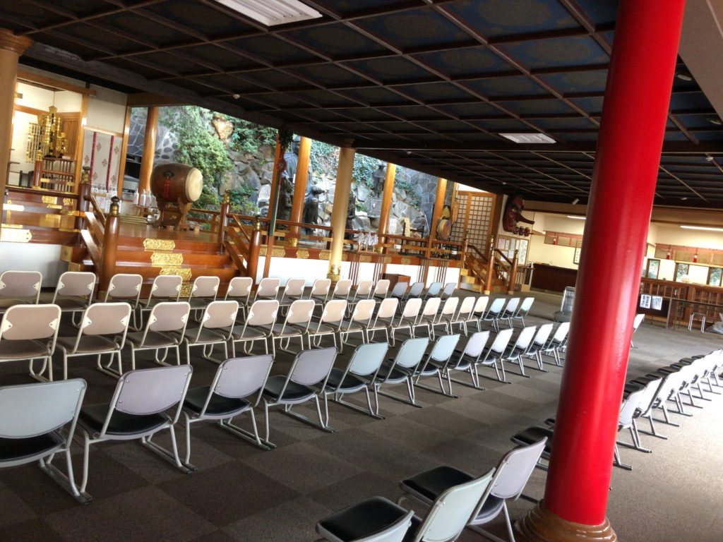 そこから靴を脱いで2階へ。かなり広い本殿を一望。ステージのようになってます。