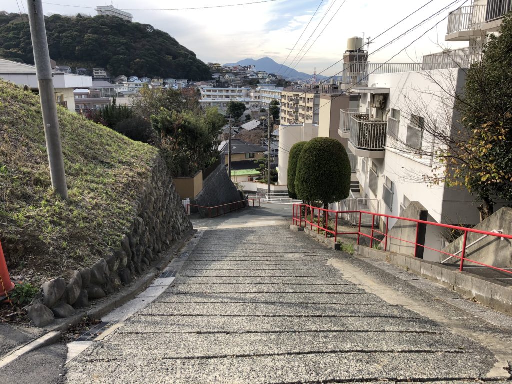 住宅地の間を縫うようにある急勾配の坂を登り、入り口へ。