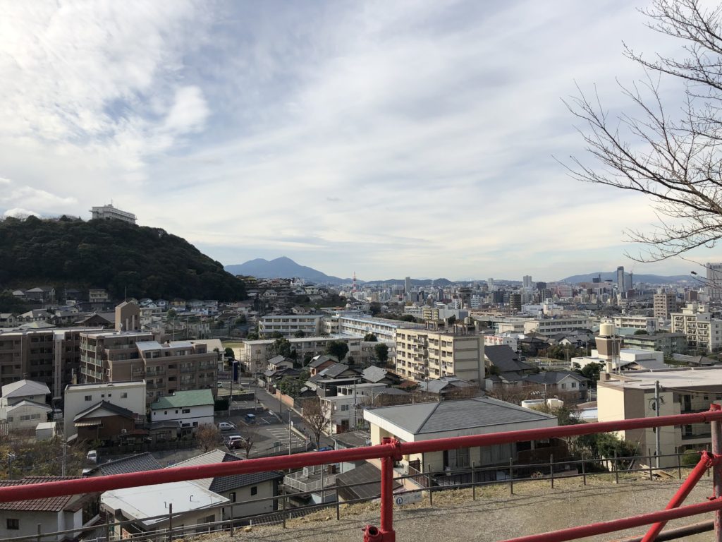 左の山の上にある建物は北九州市小倉北区の軽費老人ホーム(A型) 望玄荘です。リーガロイヤルホテル小倉も右側に見えます。