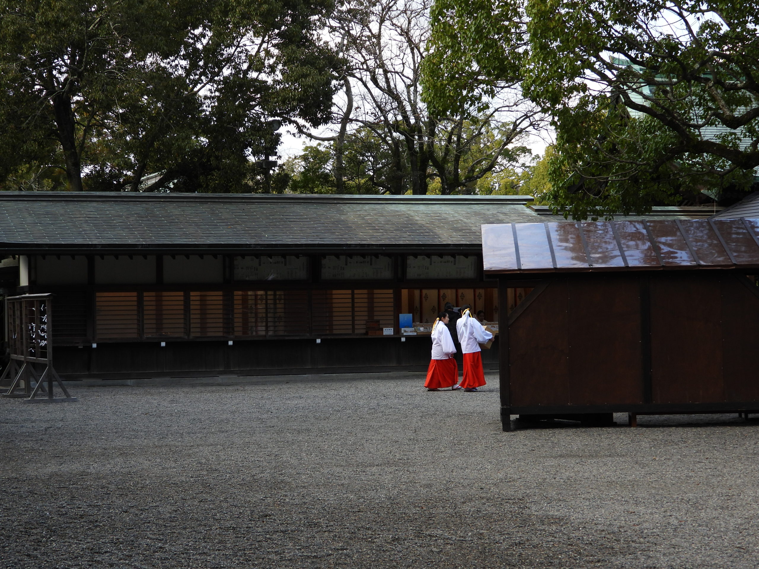 帰りの際に、歩く巫女さんを発見。お正月も近づいていますので、すごくバタバタしているようでした。