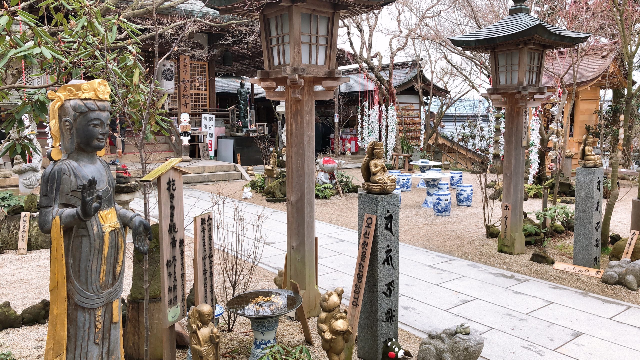 本堂前の参道にくると、いろんな仏様が飾られており、仏像のアミューズメントと言ってもいいぐらい、沢山の仏様に出会うことができます。