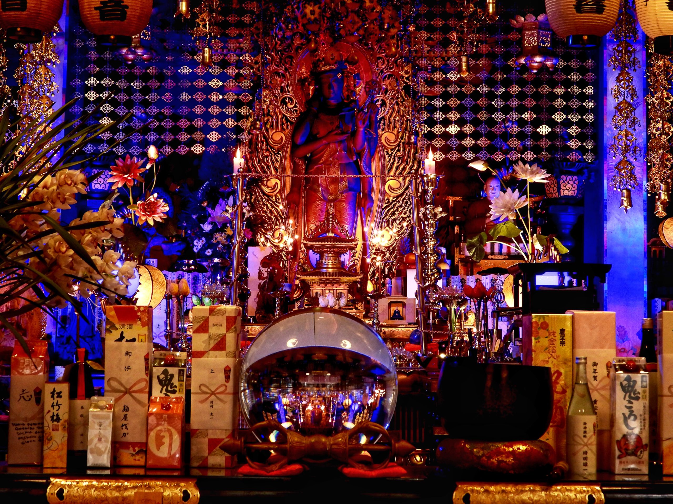 まず入ってびっくりしたのが本堂の飾り付け非常にきれいなこと。きれいにライトアップされていて本当に美しさを感じます。あとは写真を御覧ください。