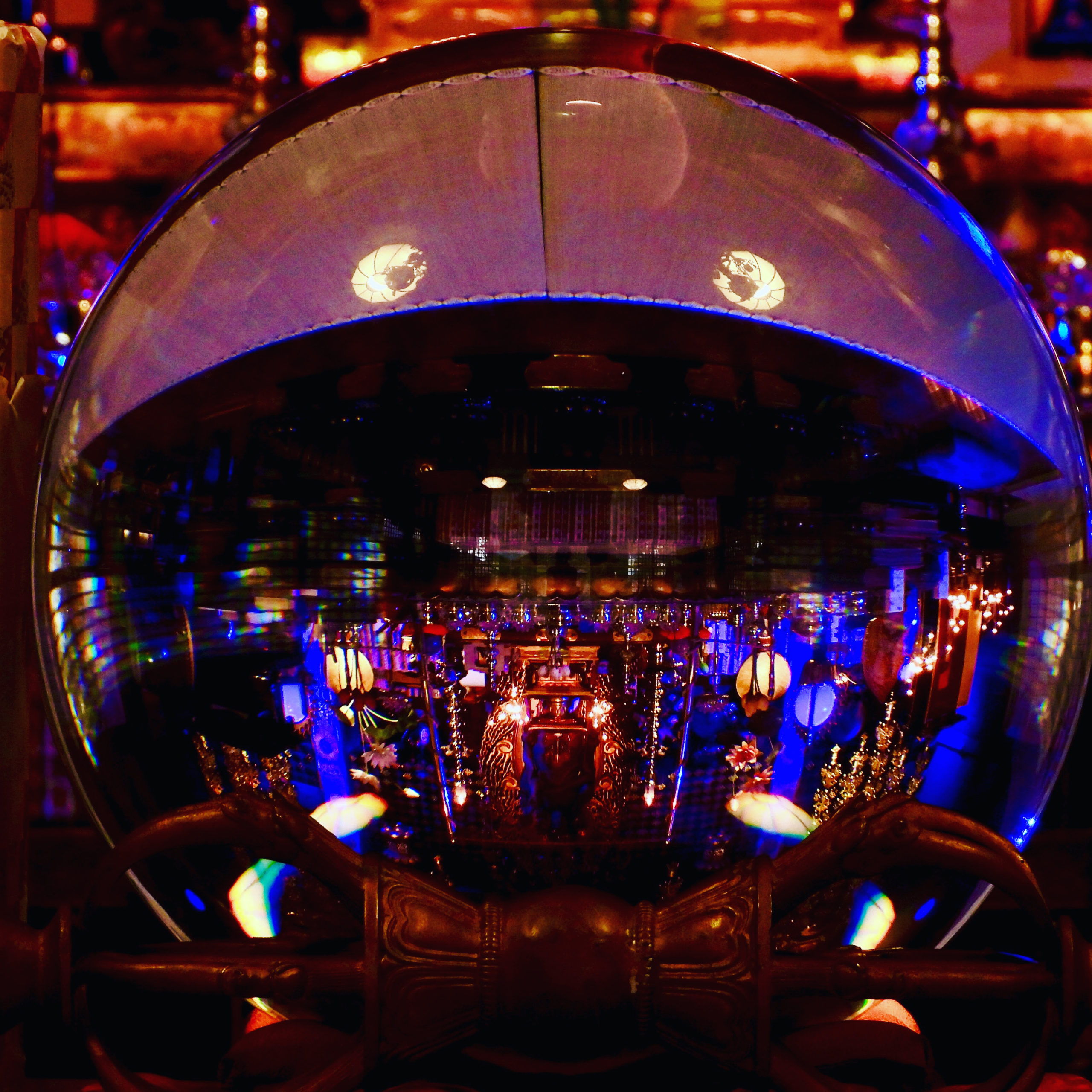 飾られた水晶に映る祭壇