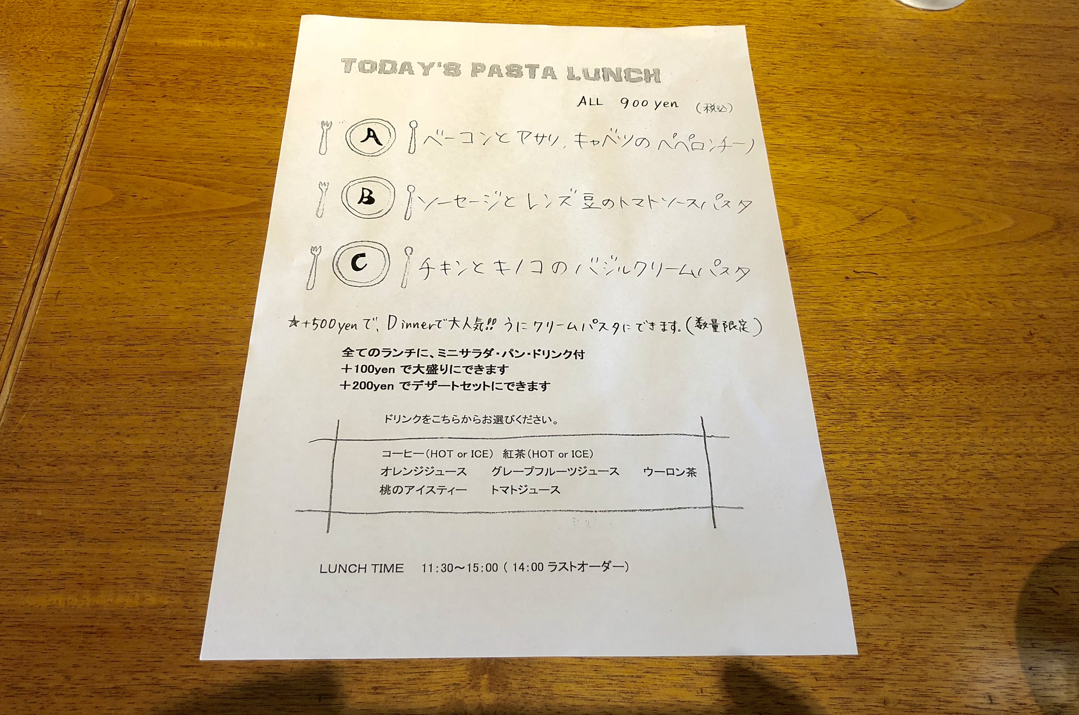 プロペラキッチンのランチメニュー