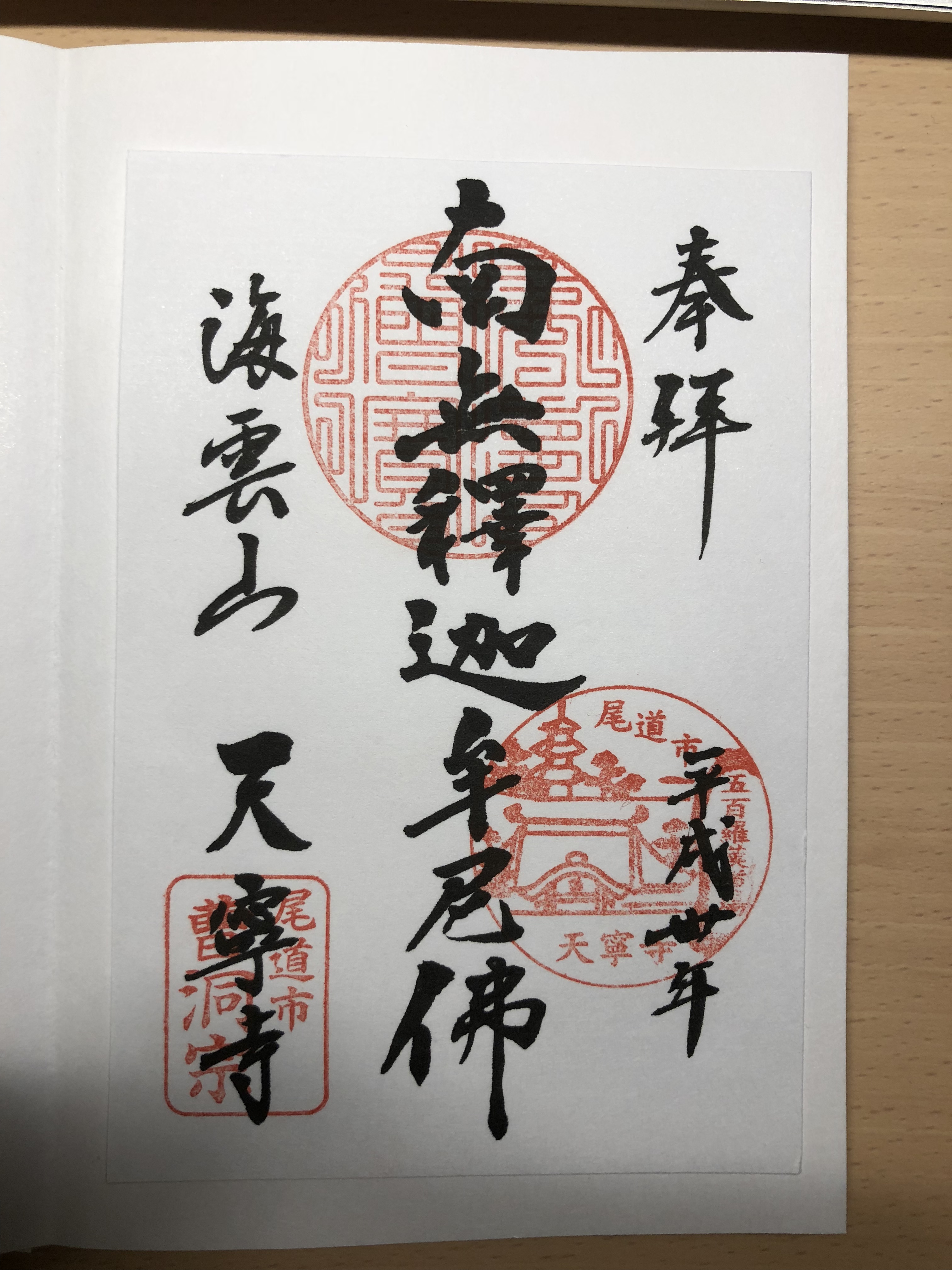 南無釈迦牟尼仏 (なむしゃかむにぶつ)と書かれています。ぜひ、尾道の天寧寺へ来られた方は、思い出として、こちらの方を呼び出して御朱印を書いてもらうのも良いかもしれません。